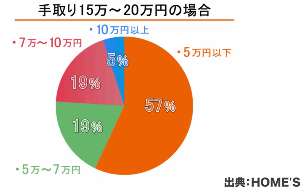 一方、手取り15万〜20万円の層では社会人になりたての人が多く、憧れの生活を求めて家賃を高めに設定する傾向があります。それでも5万円以下に抑えている人が一定数いることから、健全な家賃設定を心がけている人も多いことがわかります。