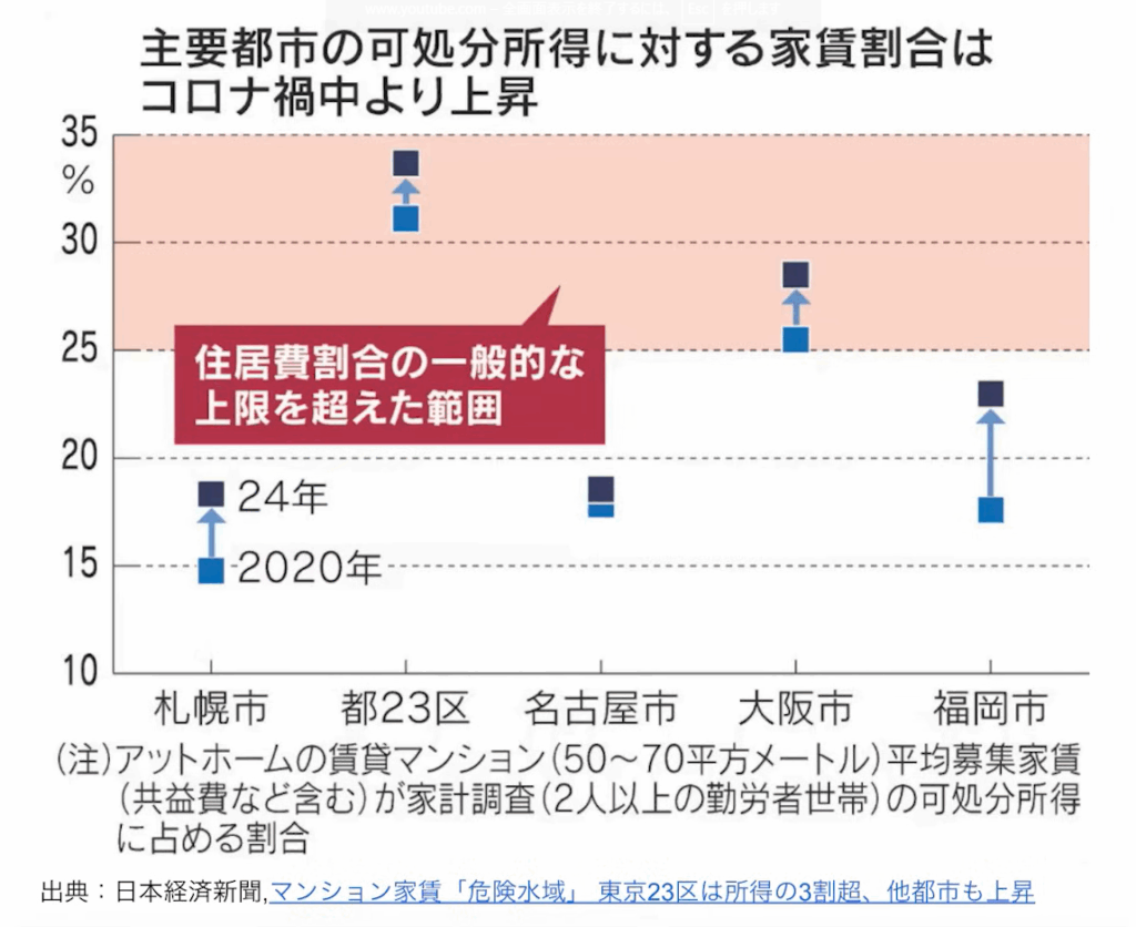 最近、都心の家賃が大幅に上昇しているというニュースが話題となっています。手取り収入の30%を超える家賃負担が珍しくなくなり、中には34%にも達するケースが報告されています。