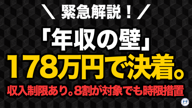 家計管理(QGS) 「年収の壁」178万円で決着。収入制限あり。8割が対象でも時限措置